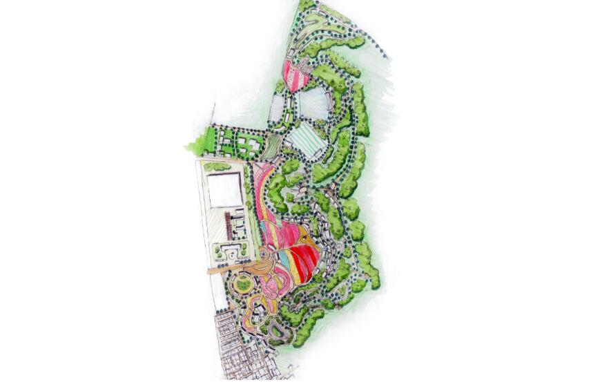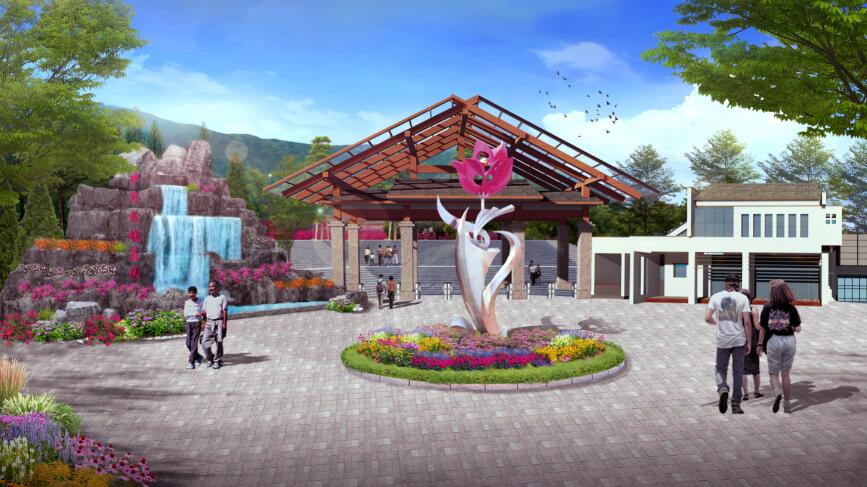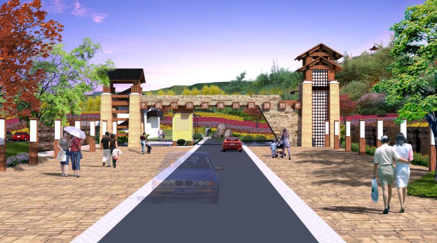 通過對(duì)入口軸線上的商業(yè)建筑、樂園設(shè)施和景觀設(shè)計(jì),加入蘊(yùn)含田園元素的雕塑小品,豐富感官體驗(yàn)。圍繞對(duì)主軸線的項(xiàng)目布局,打造出浪漫唯美的景觀環(huán)境,依次將民宿度假、仙子樂園、荷蘭商街、十里玫園、百花園、樂玩果園、生態(tài)果園等串聯(lián)起來。通過以玫瑰塔為中心,周邊種植世界著名的玫瑰品種,園內(nèi)設(shè)有特色景觀和小品打造出浪漫的景觀節(jié)點(diǎn)。