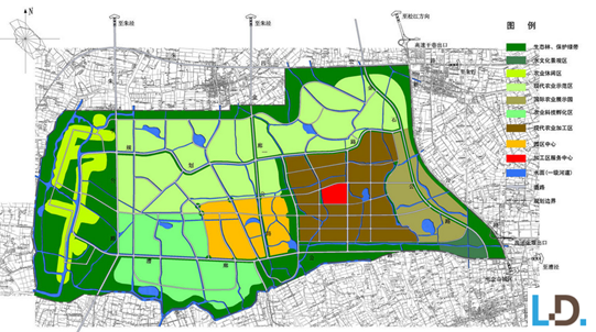 “五區(qū)”:核心服務(wù)區(qū):廊下鎮(zhèn)區(qū);創(chuàng)意農(nóng)業(yè)區(qū):科學(xué)農(nóng)業(yè)示范區(qū),包括無農(nóng)藥蔬菜基地、現(xiàn)代種子 種苗基地、玉環(huán)靈芝配置基地等;