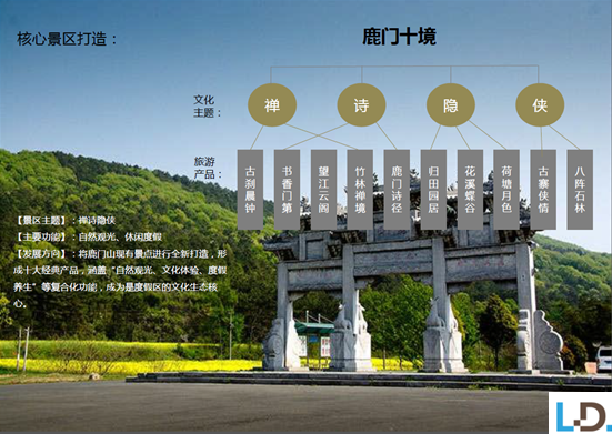 策劃思路:項目以隱逸文化為主題打造“鹿門十景”,形成景區(qū)旅游吸引力,二次激活鹿門山大眾旅游;開展“慢游鹿門”工程以休閑綠道建設(shè),滿足專項市場需求,樹立景區(qū)形象;做大鹿門寺宗教旅游打造襄陽宗教旅游第一品牌;全面強化景區(qū)基礎(chǔ)設(shè)施建設(shè),優(yōu)化景區(qū)旅游環(huán)境,打造 AAAA 級旅游景區(qū)。